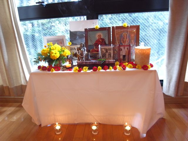 朝ヨーガ、瞑想の後は、今日のメイン!「祈り」の響きに包まれます