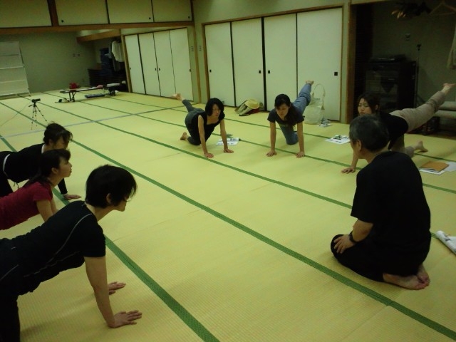 ねじるアーサナ、膝を立てるときと立てない時の響きの違いを感じました。