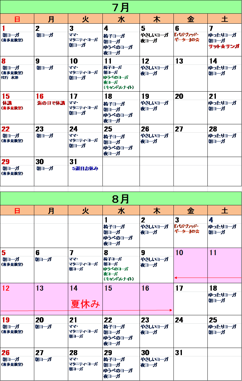 7月・8月の予定/特別講座