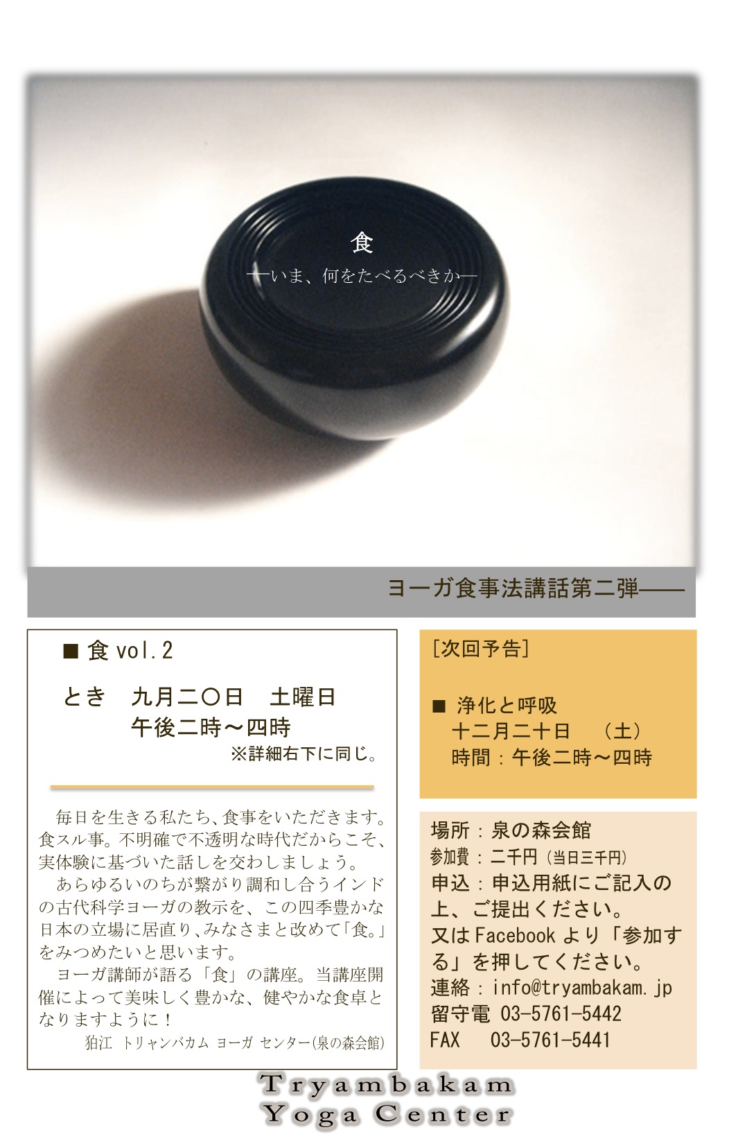 ■ 9月20日㈯ 狛江校 1400− 食 ミターハーラ ヨーガ実習と講座 定員20名