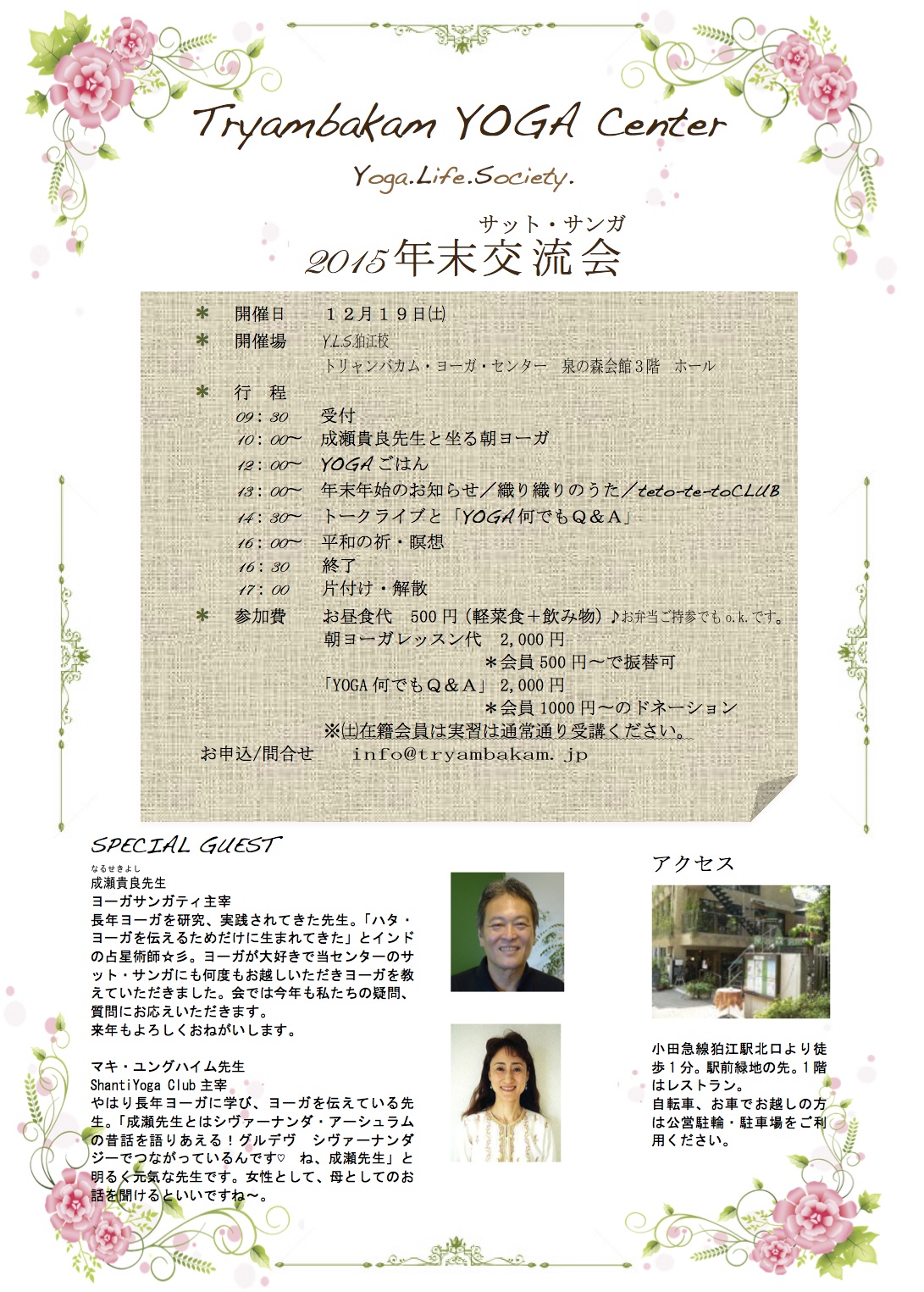 土曜日の会員さまは、ハタ・ヨーガ実習の受講料はかかりません。