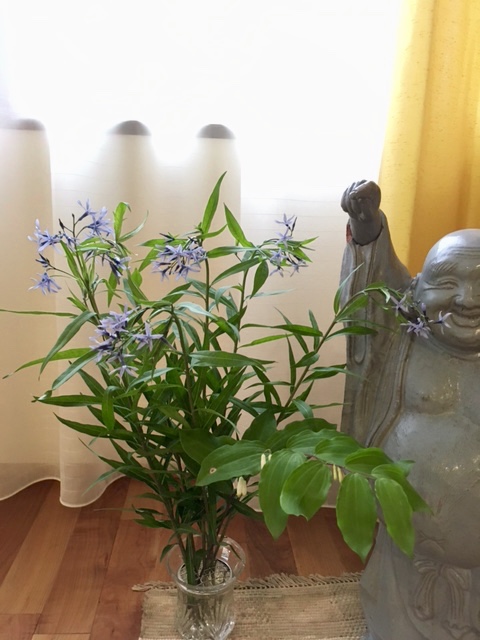 ブッタさんとご一緒「ツラヌキニンドウ」(狛江のトリャンバカム。会館を覆っている植物ですね)