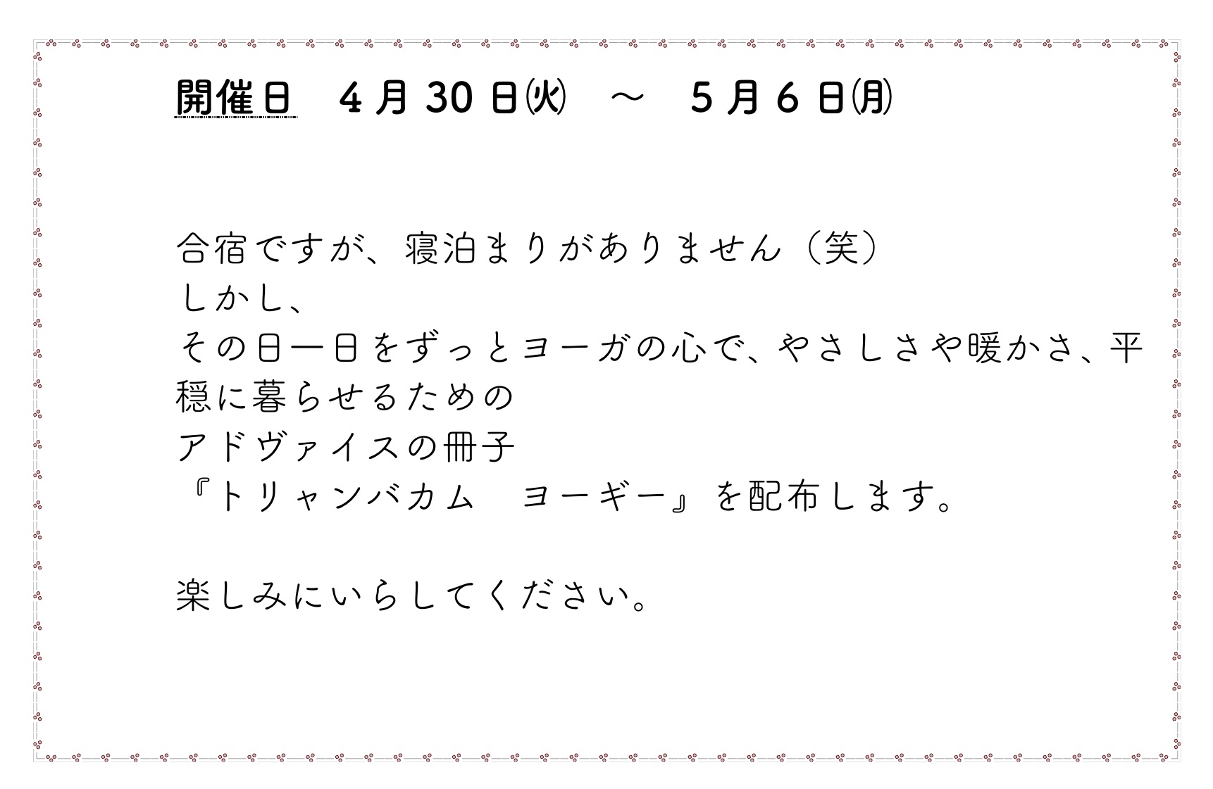 ※ 必ず前日までに受講希望のご連絡をおねがいします。