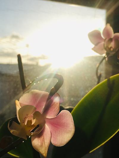 もう咲かないと思っていた外の蝶蘭が咲いた朝、