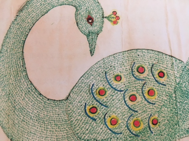 リキタ・ジャパはお写経のように、グルからもらったディークシャ・マントラやオーム、その他マントラや聖典を書き記すもの。インドの神仏画を小さな文字で描写したりします。瞑想法のひとつとして、日々の修行のひとつとして耳にしたこと、目にしたことはありましたが、こうして、実際の日常生活で、美しく作品とされて共に暮らしている日本版を初めて見ました。