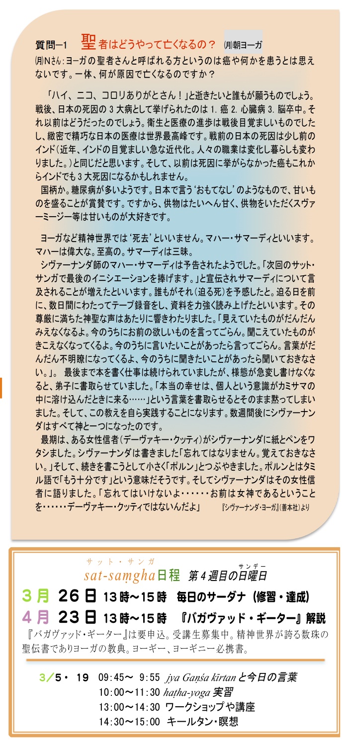 名前はサンサーラの輪廻に縛りを解き浄化する解毒剤のような影響力をもっています。それは永遠であり絶えることのない安らぎのアムリタ(甘露)のように授かったのです。ヤマ(戒めの教示)が守れず、恐れて神の名前を唱えるものですが神はあなたを戒めることはなさいません。名前をいつも勇敢に唱えなさい。