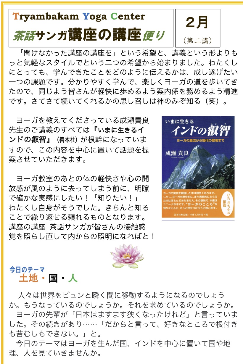 次回は3月1日(月)です。座ったアーサナです。