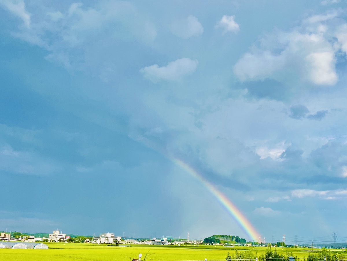 岩手から東京へ帰る道のりで、虹がかかりました。