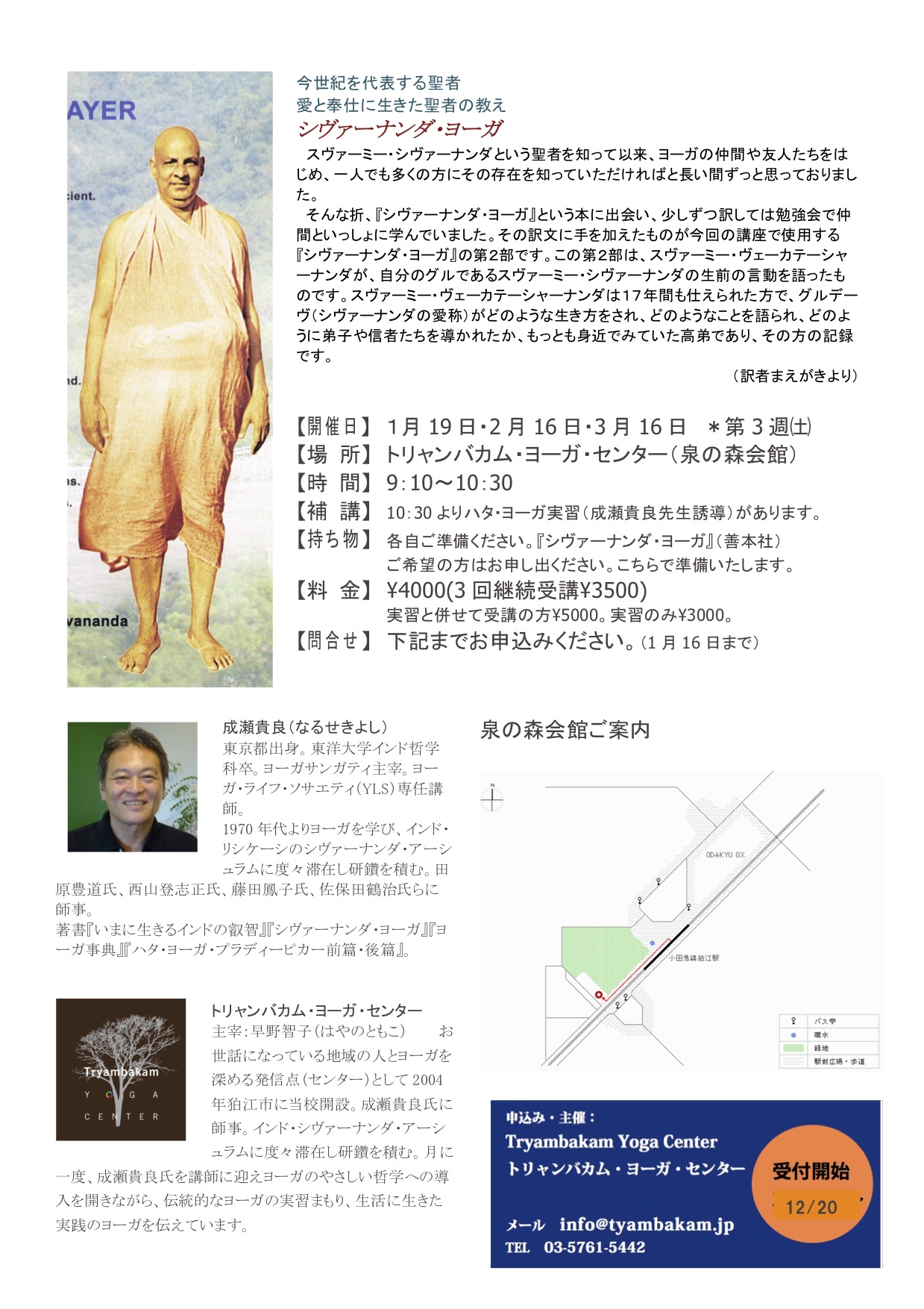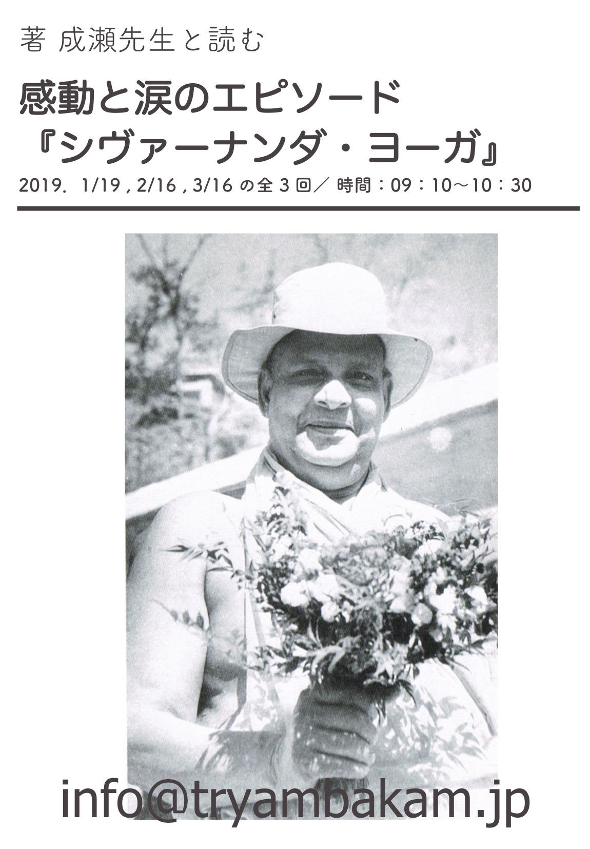 さて、シヴァーナンダと共に歩まれた成瀬貴良先生と読む『シヴァーナンダ・ヨーガ』講座のご案内