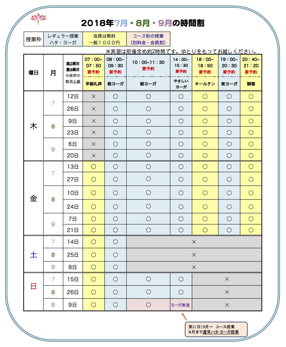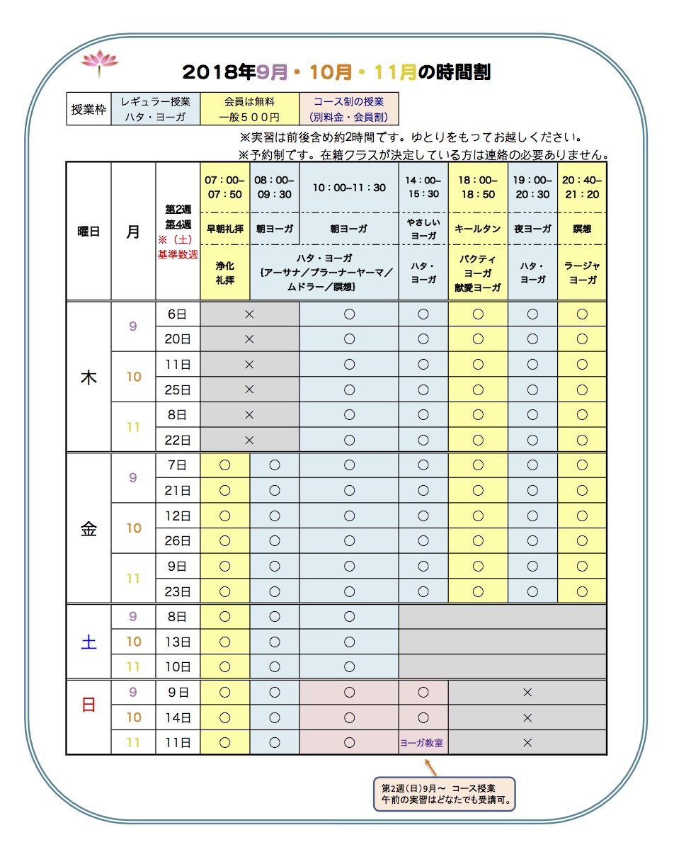 >09:00~ ヨーガ自主練習