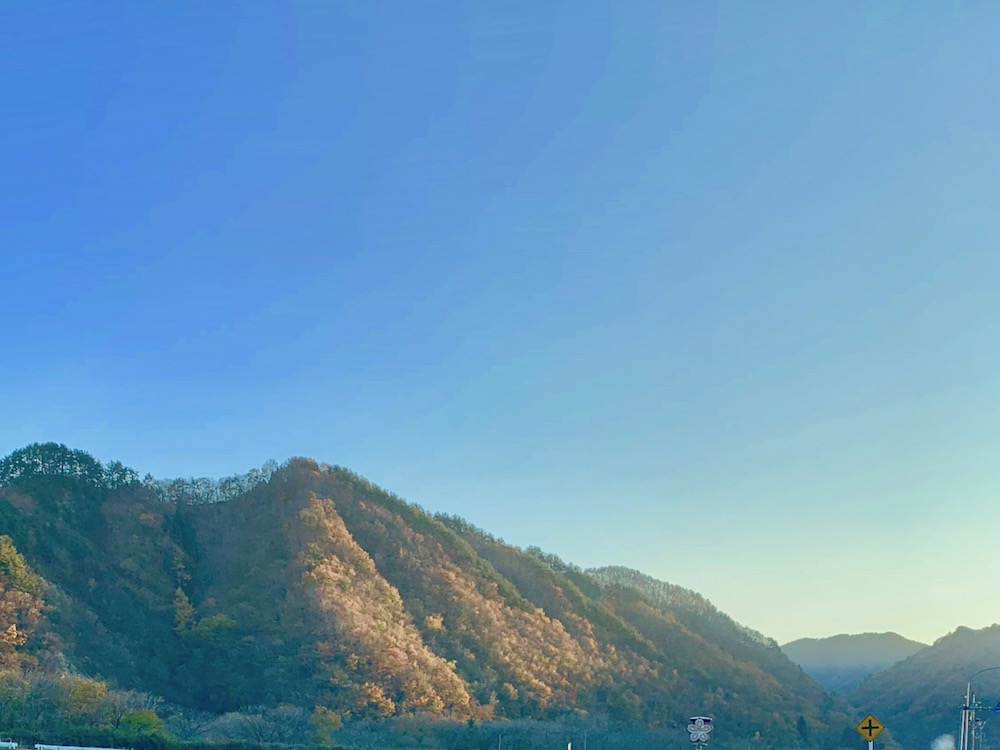 通りは赤に黄色にオレンジのグラデーションと美しい紅葉。