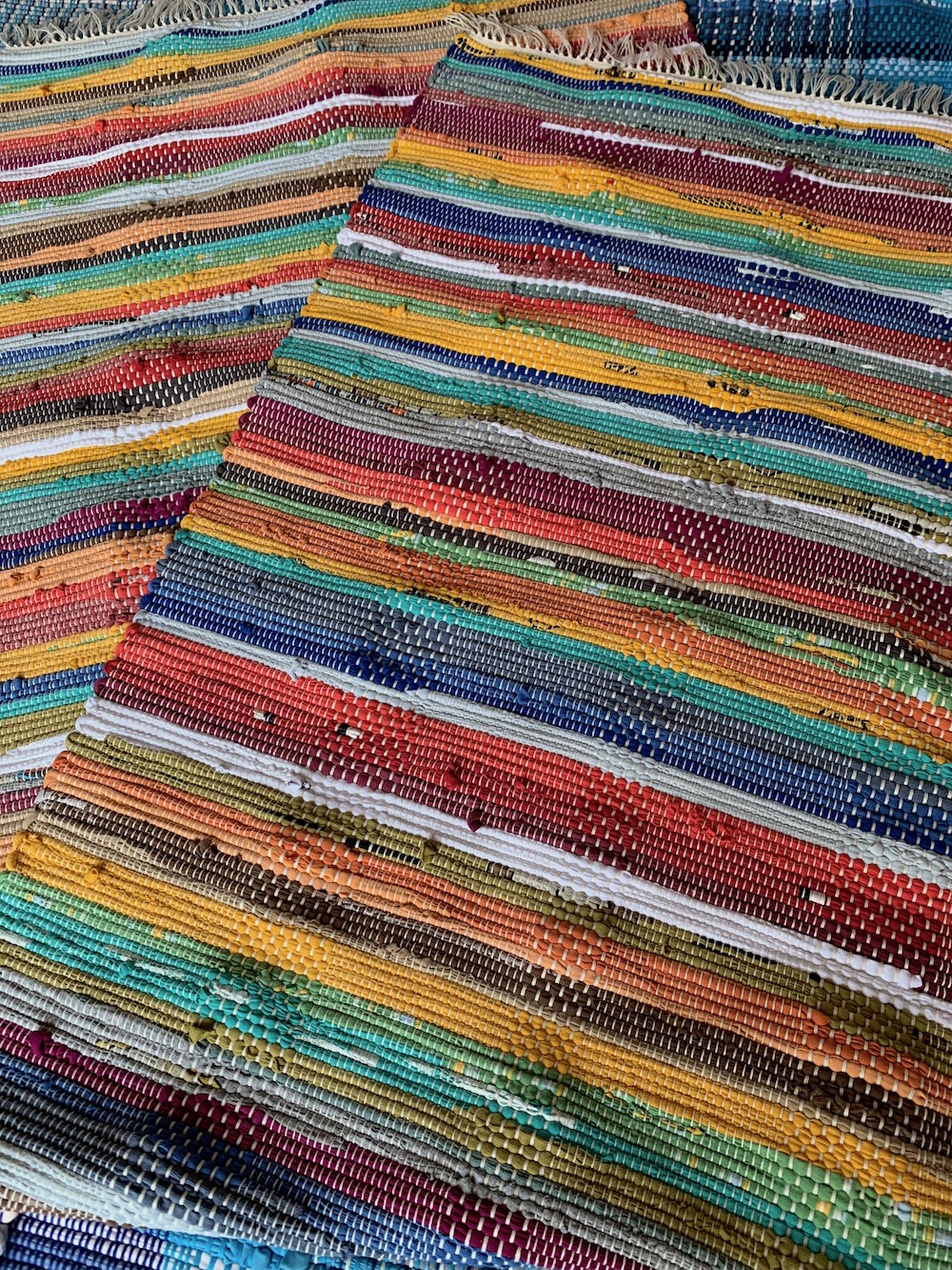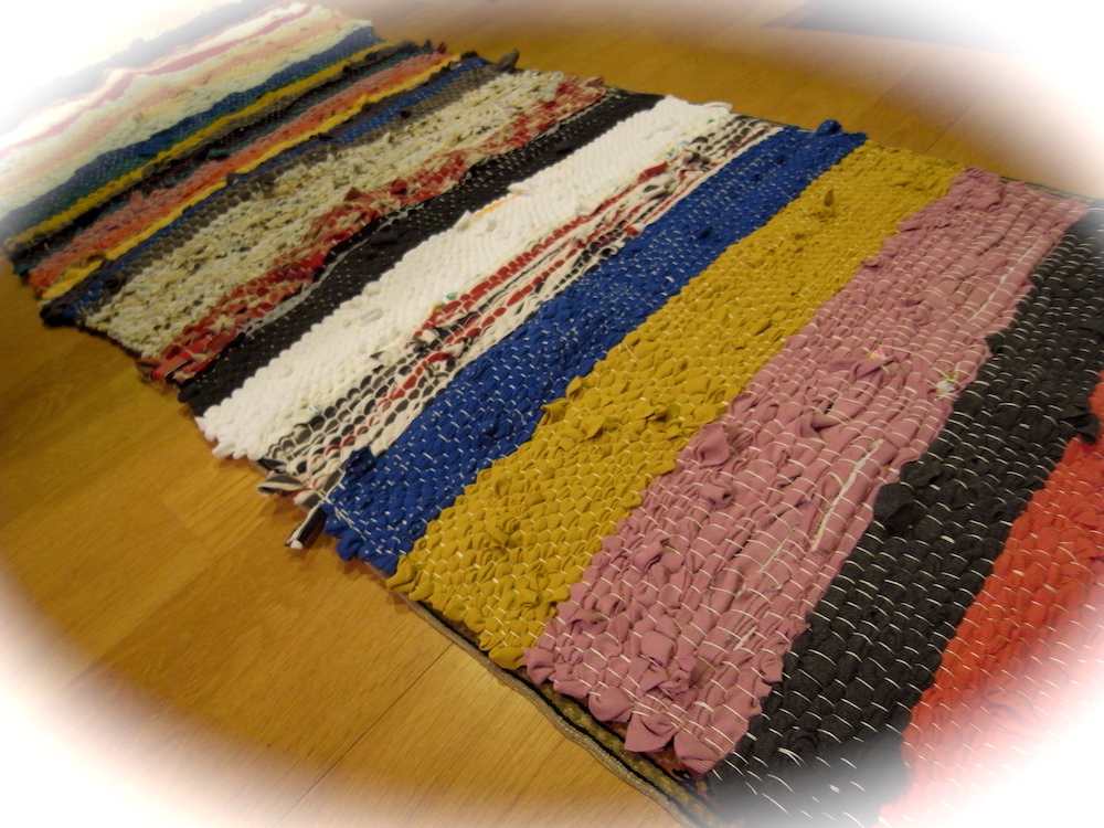 本来なら織りの作品を一人で仕上げるものですが、これは皆でつないで一つのマットを織り上げるという方法でした。