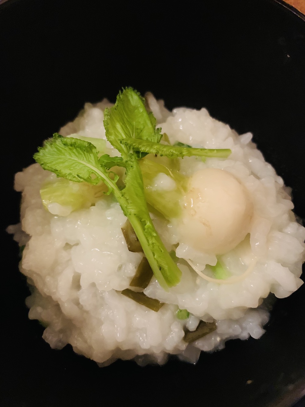 ・間引き子蕪を*オモトのトロトロ*根昆布で お粥。