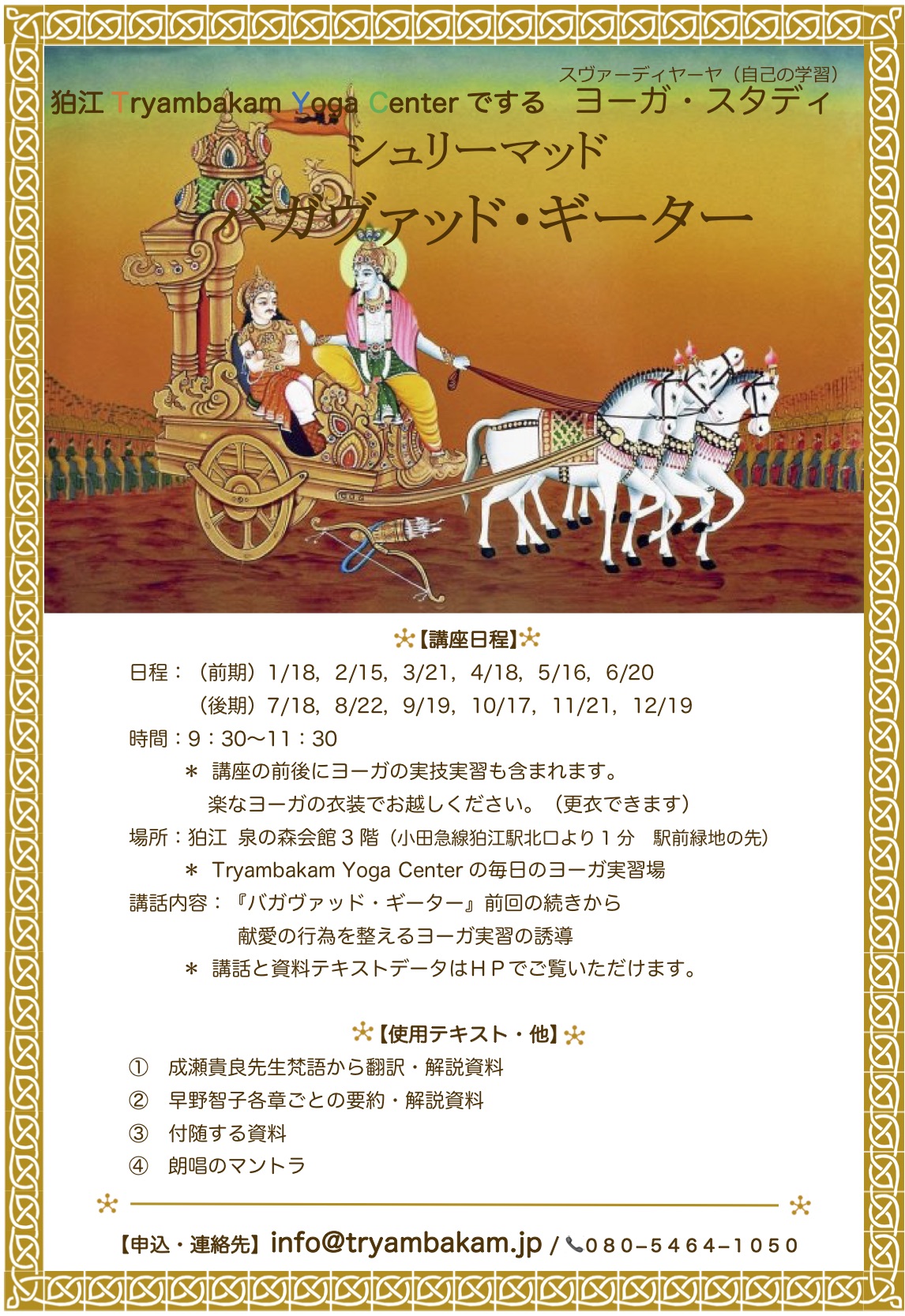 【申込・連絡先】info@tryambakam.jp / 📞080−5464−1050