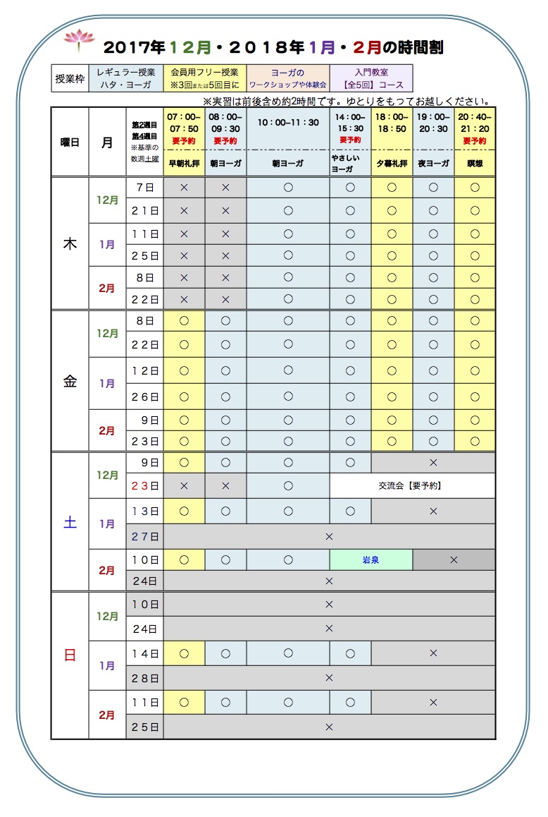 1月8日(成人の日・月)は特別レッスン【毎日のヨーガ】10時より。