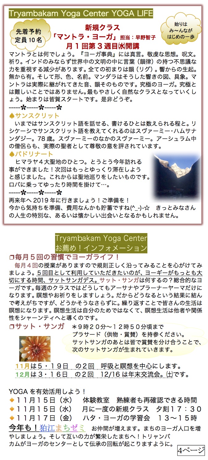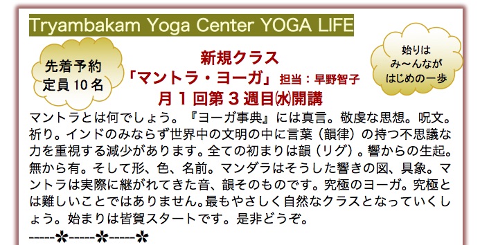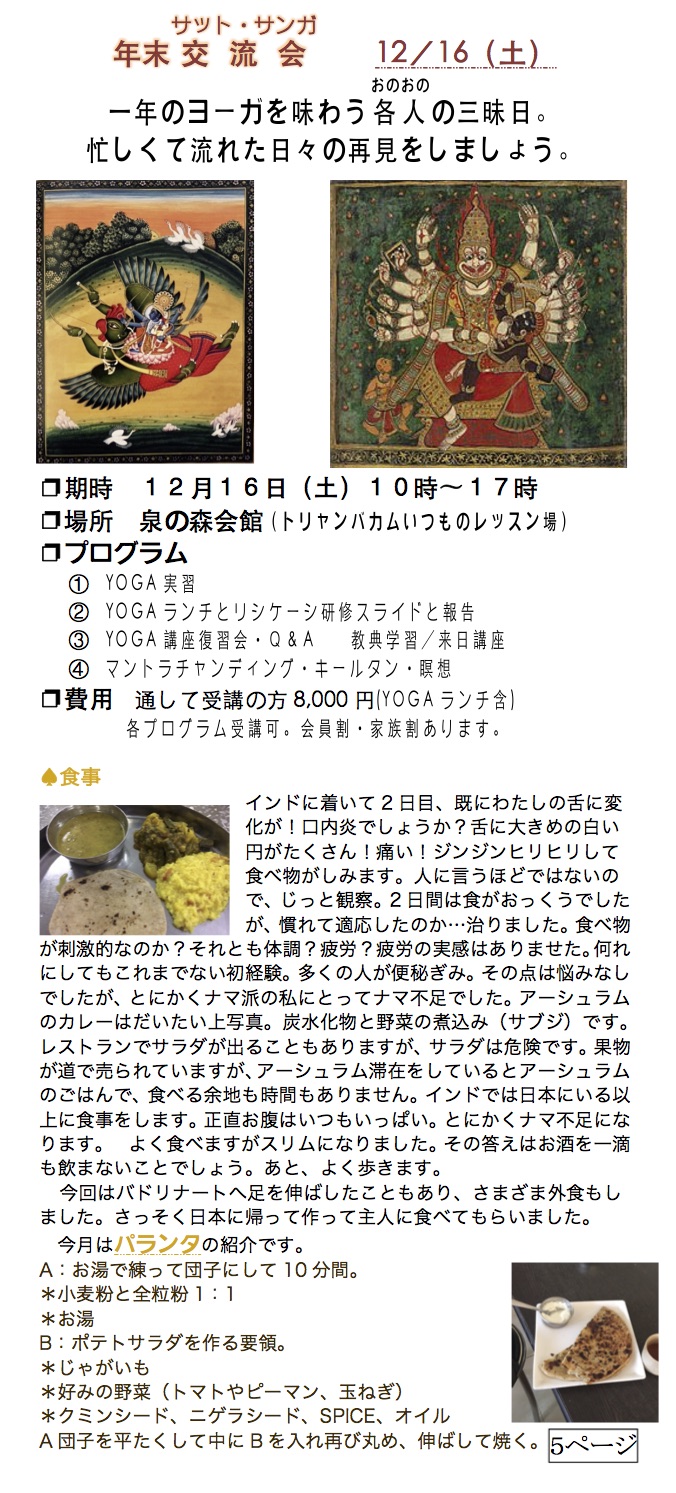 ❐申込:必要 info@tryambakam.jp