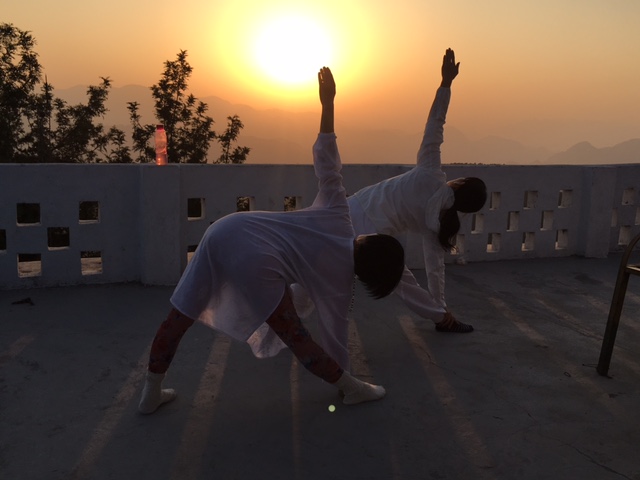 マントラやバジャンを唱え、そしてヨーガをしていきます。