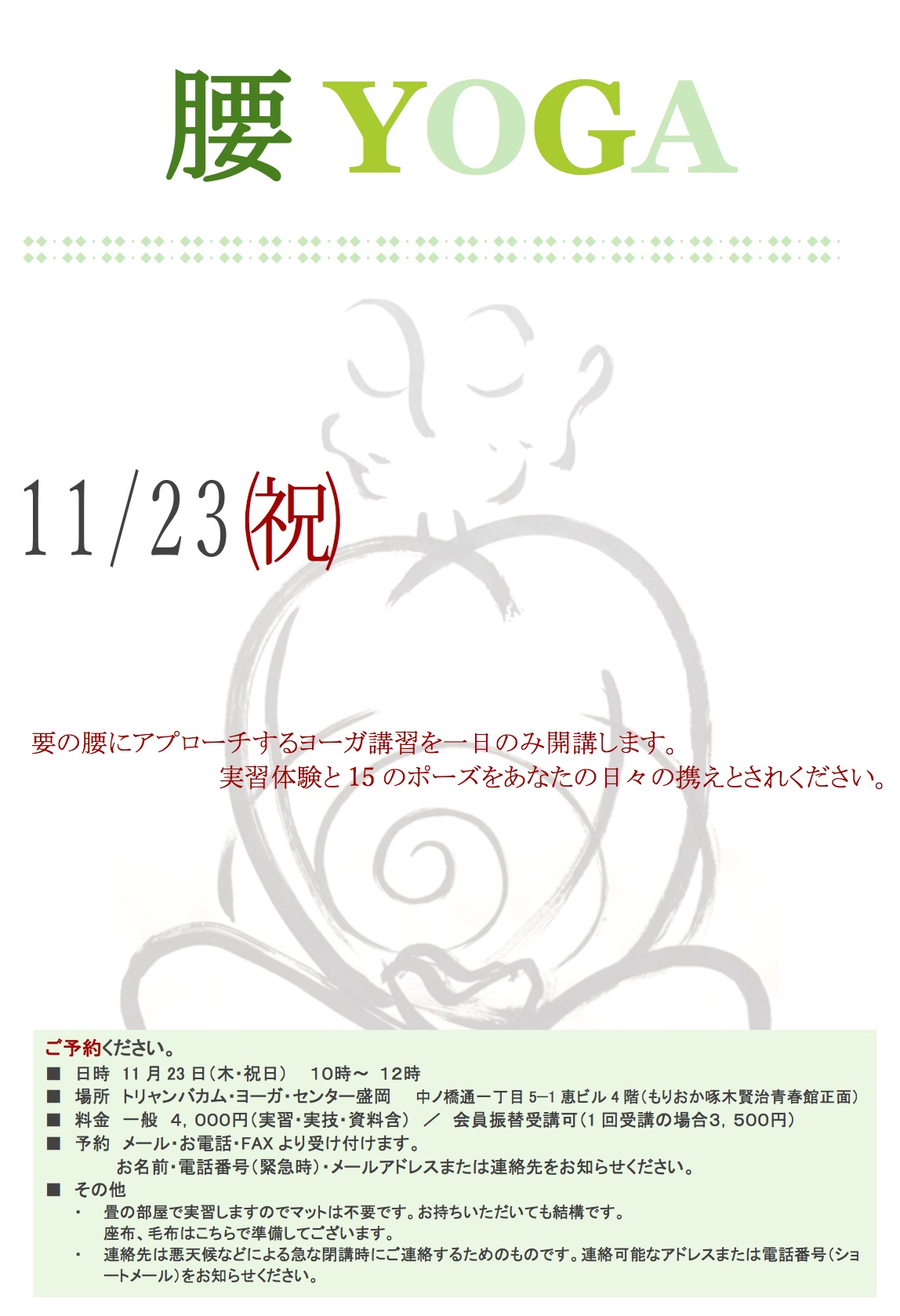 ■場所:トリャンバカムヨーガセンター盛岡