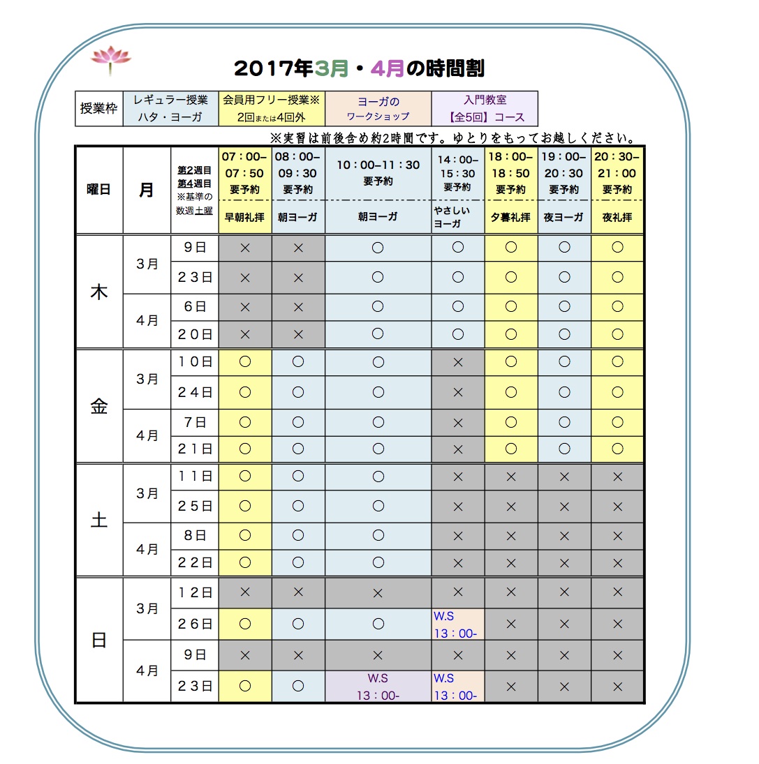 瞑想を体系的に実習されたい方の申込受付開始します。▶6.4月からの日曜10時から「ヨーガ教室」(全5回)がはじまります。受付中。4名以上〜開講。
