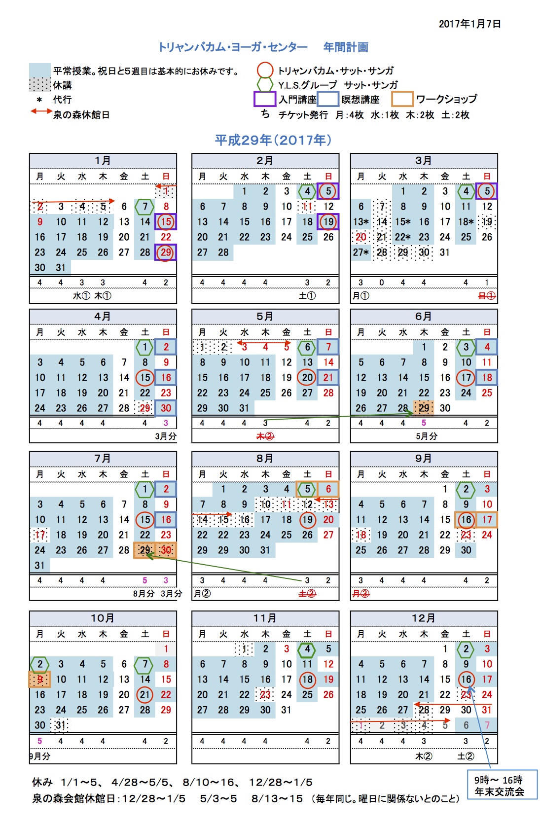 理論と実践がひとつになったヨーガを伝えるトリャンバカム・ヨーガ・センターは本年もレギュラーなヨーガ実習の授業と定期的にサット・サンガや講座、ワークショップを開催してまいります。